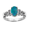 White Gold Australian Opal Doublet and Diamond Engagement Proposal Ring