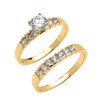 Yellow Gold Channel Set Round CZ Engagement Wedding Ring Set