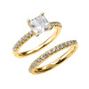 Solid Gold Princess CZ Classic Engagement Wedding Ring Set.