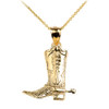 Add an authentic Western touch to your wardrobe with this gold cowboy boot pendant.