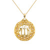 Yellow Gold Diamond Filigree Round Allah Pendant Necklace ( 1.5" )